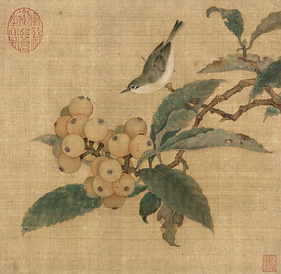 参阅图:北京故宫博物院藏 宋 《枇杷山鸟图》