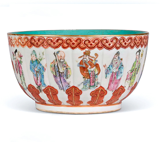 清道光 内松石绿釉外粉彩神仙人物纹碗