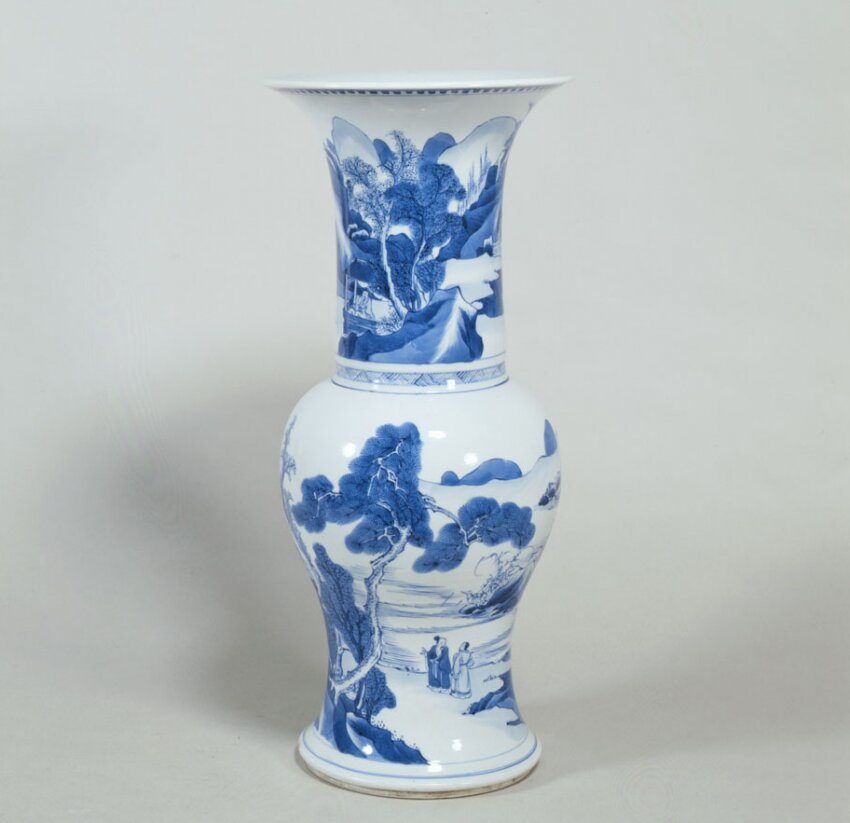 参阅图:清康熙 青花山水纹凤尾尊,日本东京国立博物馆藏。